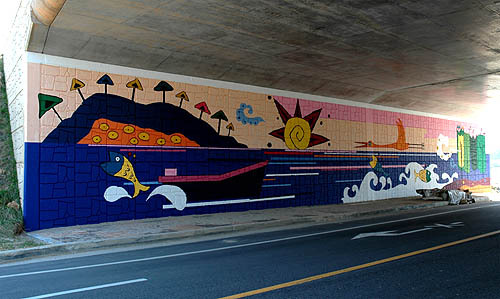 따라서 이를 개선하고 아름다운 관광부안을 가꾸고 볼거리를 제공하고자 콘크리트 교각에 벽화(super graphic)가 그려지고 있다.