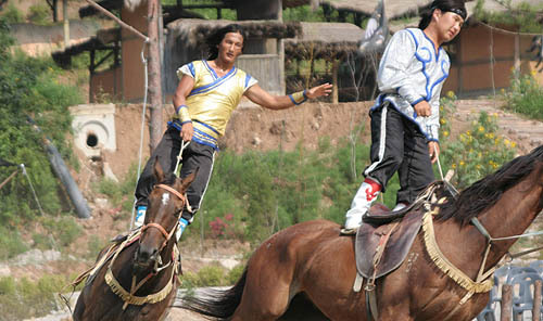 타원 무대에 말과 인간이 하나 되어 벌이는 마상쇼는 1일 4회 공연을 하며, 유목생활과 타 부족과의 전쟁으로 인해 말과 생활이 하나가 된 몽고인들의 기백을 엿볼 수 있으며 고난이도의 묘기들로 관람객들의 탄성을 자아내고 있다.