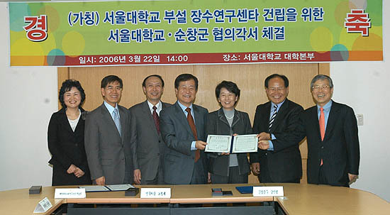 순창군과 서울대학교 체력과학노화연구소가 장수연구센터 건립을 위해 22일 상호 업무협약을 체결해 관심이 모아지고 있다.