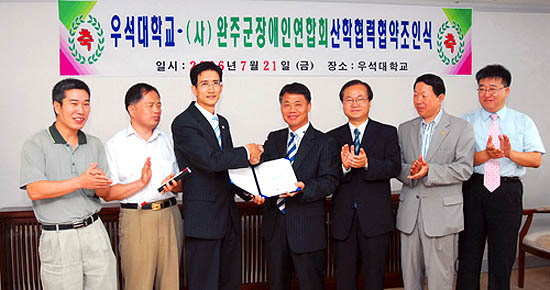이날 대학본관 회의실서 열린 협약식에는 서동석 산학협력단장을 비롯한 대학 교직원들과 김용찬 완주군 장애인연합회장, 조상완·김철용 이사 등 양측 관계자 20여명이 참석했다.