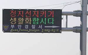 부안서는 최근 운전자 부주의로 인한 교통사고 발생이 증가함에 따라, 지난달 31일 부안군 행안면 23번 국도상에 LED전광판을 설치, 정지선 지키기 등 교통안전을 위한 홍보문안을 게시하고 운전자들의 적극적인 참여를 유도하는 한편 다양한 교통정보와 민원사항안내를 제공하고 있다.