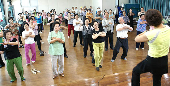 노인대학에 따르면 여름방학을 맞아 실시하고 있는 스포츠댄스 및 생활체조, 건강체조 등의 프로그램이 노인들에게 큰 호응을 얻고 있다.