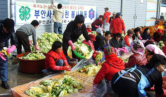 부안군농업기술센터 생활개선회원(회장 최덕순)과 4-H연합회(회장 정찬희)는 연말을 맞아 어려운 이웃에게 김장김치를 전달하는 따뜻한 사랑의 마음을 실천했다.