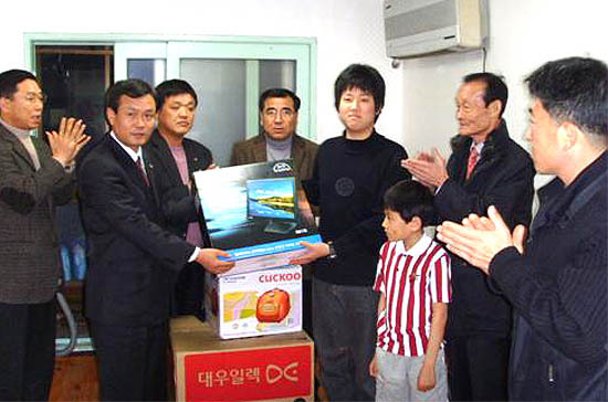 전주제일로타리 클럽(회장 최승재)에서는 지난 12월5일 회원들의 자발적인 성금으로 21인치TV 1대, LCD모니터 2대, 팬티엄4 본체 1대, 가스레인지 1대, 압력밥솥 2대를 소년·소녀가장 2세대에게 전달하였습니다. 사정이 딱한 어린 가장들에게 전해진 지원품속에는 추위를 녹이는 훈훈한 열기가 타올랐습니다.