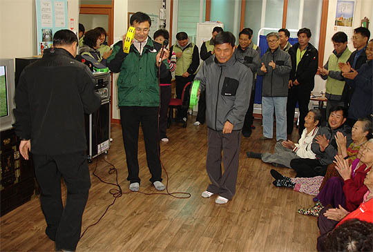 한국농촌공사 부안지사(지사장 김영길)은 28일(금) 체력단련행사에 앞서 상서면 감교리에 소재한 노인복지시설 은총의집을 직원들 모두가 찾아 그 동안 급여에서 각출한 사회공헌기금과 회사가 동일한 규모의 지원금을 내는 매칭 그랜트(Matching Grant) 제도를 이용하여 구입한 노래방기기를 전달하고 봉사활동을 전개하였다.