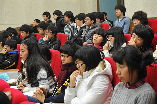 이날 허 강사는 수능 점수를 알기쉽게 경제적 가치로 환산하며 조금만 전략적으로 공부해도 고득점은 물론 훨씬 경제적 효과를 얻을 수 있음을 강조하며 대입 수능 고득점 학습전략으로 '보물찾기 방식'과 '신호등 원리 공부방법' 등을 소개해 수강생들을 매료시켰다.