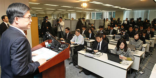 진동수 금융위원회 위원장이 10일 오후 서울 여의도 금융위원회 기자실에서 기자들을 대상으로 금융정책 추진방향에 대해 설명하고 있다.