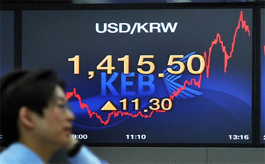 월-달러 환율이 5거래일째 상승하고 있는 가운데 16일 오후 서울 을지로 외환은행 본점 딜링룸에서 딜러들이 환율 변화 추이를 지켜보고 있다.