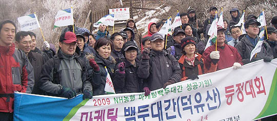 전북농협은 2009년 건전결산 및 종합업적 1위 달성을 위한 전 사업부문 마케팅역량을 강화하기 위해 백두대간 성공기원 덕유산 등정 다짐대회를 14일 가졌다.