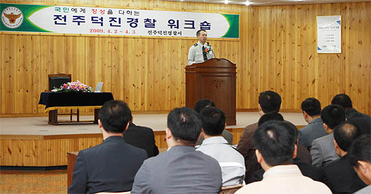 정철수 전북경찰청 차장은 2일 전주 덕진경찰서를 방문, 직원들을 대상으로 '경찰상 확립과 국민신뢰 회복을 위한 인성함양 교육'을 진행했다.
