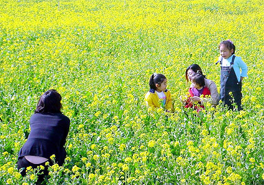 유채꽃밭에서 관광객들이 즐거운 시간을 보내고 있다. (desk@jjan.kr)