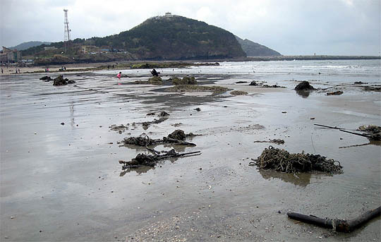 이날 수거된 폐기물 등은 3~4t 분량에 달하나 이마저도 곧바로 치워지지 못하고 해안에 임시적치돼 수일간 흉물스런 모습을 드러냈다.