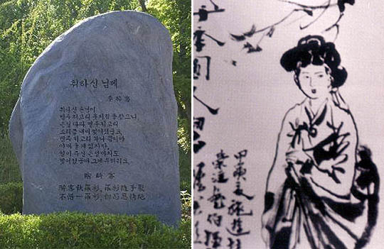 부안출신 기생인 매창은 고향 사랑이 극진했던 것으로 알려졌다. 매창 시비와 그림. (desk@jjan.kr)