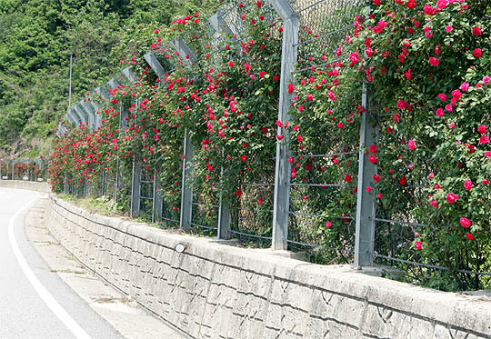 한국의 아름다운 거리 100선에 선정된 옥정호 순환도로에 장미꽃이 만발, 소풍객들의 발길을 유혹하고 있다.
