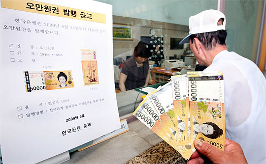한국은행 전북본부는 오만원권 발행 첫날인 23일 하루 동안 관내 금융기관과 한은 화폐교환 창구를 통해 도민들에게 오만원권 400여억원을 공급했다. 이중 금융기관을 통해 404억원, 한국은행 전북본부의 화폐교환창구를 통해 1억1천만원을 발행했다.