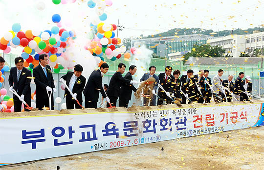 부안문화교육회관은 총 사업비 61억여원을 투입 8884㎡부지에 지상 3층 연면적 2866㎡'규모로 내년 3월 완공목표이며 어린이열람실·시청각실·다목적홀·어학실·평생학습실·도서관 등을 갖추게 된다.