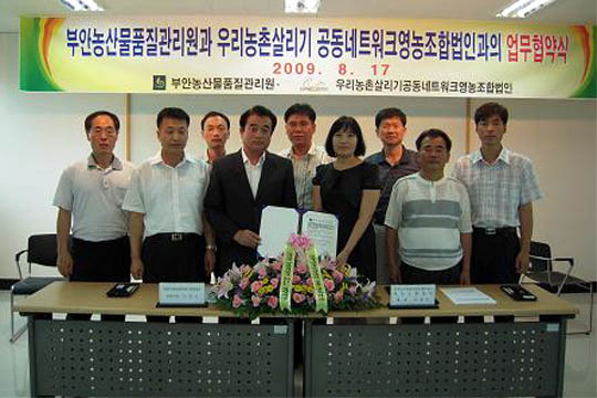농산물품질관리원 부안출장소(소장 오상오)와 하서면 장신리 소재 우리농촌살리기공동네트워크(대표 신점순)는 농식품의 품질 향상과 소비자 신뢰 확보 등을 위해 지난 17일 MOU(업무협약)을 체결했다.