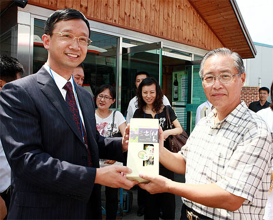 국제교류 협약차 부안군을 방문한 중국 중경시 무릉현 중경시 무릉현 리우치 당서기를 비롯한 대표단은 부안뽕주에 대하여 비상한 관심을 보였다.