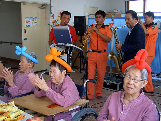 16일 오후에는 부안군 주산면 소재 노인요양시설인 송산효도마을(원장 김은경)에서 색소폰 동호인인 김형일(59·사업)과 백완기(53·주유소운영)씨등 2명과 함께 1시간여 동안 색소폰 연주 위문공연을 가져 50여명의 노인들에게 흥겨움을 듬뿍 안겨줬다.