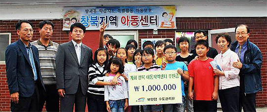 지난 추석 때에는 직원들이 성금을 모아 부안 계화면 창북아동센터에 100만원을 , 댐주변지역 홀로사는 노인들에게 햇쌀 50포(10㎏짜리)를 전달했다.