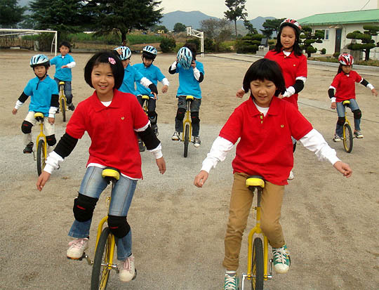 한편 이 교장은 "침체된 소규모 농촌학교 학생들의 경우 소극적이고 자신감이 부족한 감이 없지 않으나 외발자전거를 통해 학생들의 기초체력이 향상되고 활기찬 학교생활을 하는 긍정적 효과를 거두고 있다"고 설명했다.