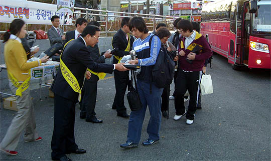본부 직원들은 이날 오전 7시에서 8시반까지 전주고 앞에서 수험생이 휴대할 수 있는'휴대용 손난로'와 방석 1000개를 수험생과 응원차 나온 학부모에게 따뜻한 차와 함께 지원했다.