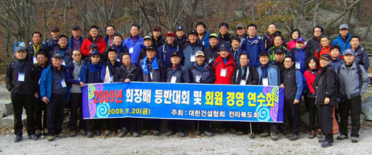 대한건설협회 전라북도회는 지난 20일 회원사 대표이사 100여명과 함께 2009년도 회장배 등반대회 및 경영연수를 실시했다고 밝혔다.