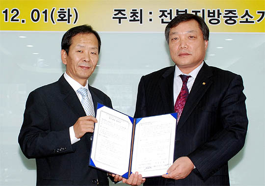 전북은행(은행장 홍성주)은 1일 전북지방중소기업청(청장 이인섭)과 수출 유망 중소기업에 대한 금융우대 지원 협약을 체결했다.