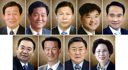 (윗줄 왼쪽부터 시계방향으로) 장석종 의원, 임기태 의원, 오세준 의원, 박천호 의원, 홍춘기 의원, 채옥경 의원, 장공현 의원, 김병효 의원, 하인호 의원. (desk@jjan.kr)