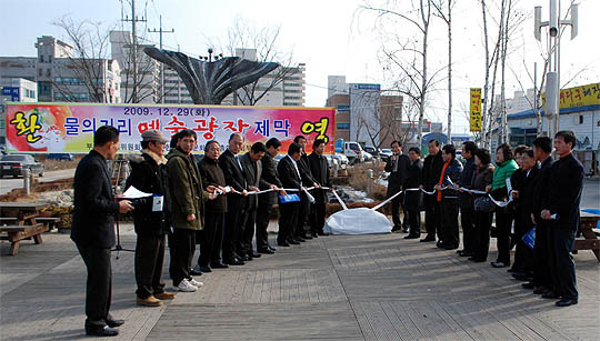 부안군 부안읍 물의 거리에서 새로운 조형물 건립 제막식과 예술의 광장 명명식이 부안읍사무소(읍장 김동수)와 부안읍 자치위원회(위원장 양규태) 주최로 지난해 연말 열렸다.