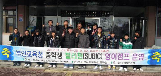 한편 부안교육청은 지난해 부안군 지원 3600만원 지원과 자체 예산 1000만원을 확보, 여름방학때 초등학생 20명을 대상으로 필리핀 연수를 실시한데 이어 중학생은 10명을 대상으로한 4주간 필리핀 수빅(Subic)시 영어캠프를 위해 지난 7일 출발행사를 가졌다.