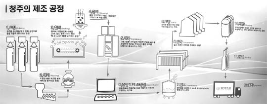 쌀로 빚어내는 청주는 품격 높은 고급 양조주로서 사랑받았지만 해방 후 이어진 식량난과 쌀값 폭등, 높은 주세 등 생산 환경은 크게 열악했다. 막걸리는 28℃ 이상 고온에서 발효시키지만, 청주는 16℃ 이하 저온에서 발효시켜야 하는 특성을 갖고 있다. 이 때문에 여름에 공장을 가동하지 못하는 것도 문제였다. 현대식 생산설비를 갖춘 롯데주류BG 군산공장의 경우 중앙제어조정실에서 발효탱크의 온도변화를 자동으로 제어하며 연중 생산하고 있다.