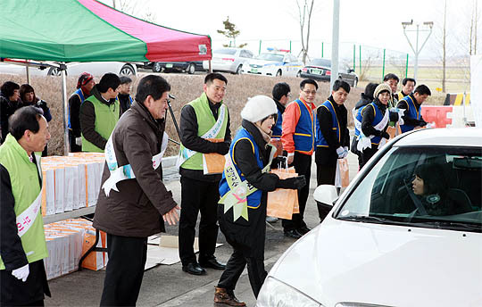 지난 13일부터 15일까지 서해안 고속도로 부안IC 및 줄포IC 나들목, 부안지역 관광지 등에서는 김호수군수·나연석 부안군수를 비롯 <영> 부안쌀 공동사업단. 농업인 단체장, 농협부안군지부장, 읍면 농협장, 민간RPC 대표, 농업인단체, 부안군 사회봉사단체 (부안JC. 5개로타리 클럽)가 참여한 가운데 지난해 탄생한 '천년의 솜씨'홍보전이 대대적으로 전개된 것. 영>