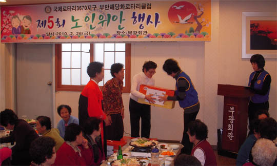 국제로타리3670지구 부안해당화로타리클럽(회장 김정숙)은 2010년 노인위안행사를 지난달 26일 부안읍 부광회관에서 관내 70세 이상 노인 100여명을 초청한 가운데 가졌다.