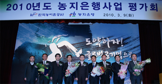 농어촌공사 부안지사(지사장 김영길)가 9일 본사 농촌인재개발원에서 열린 농지은행사업 종합평가 시상식에홍문표 사장으로부터 전국 최우수 기관표창을 받았다고 밝혔다.