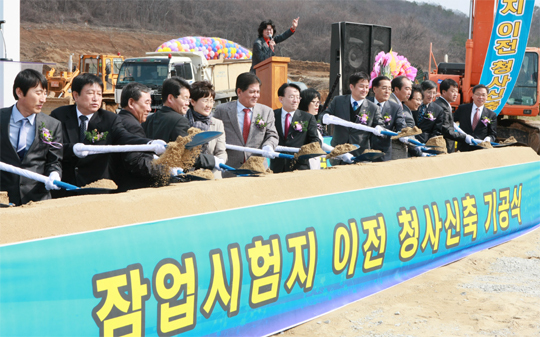 부안에 둥지를 새롭게 틀게 될 전북도 농업기술원 잠업시험지 청사 신축을 위한 기공식이 지난 12일 변산면 마포리 유유 마을에서 김완주 도지사,김호수 부안군수, 권익현·조병서 도의원을 비롯한 기관단체장과 주민 등 300여명이 참석한 가운데 열렸다.
