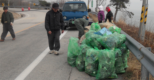 이같은 쓰레기 수거 활동 결과 바다에서 떠올라온 스티로폼을 비롯 페트병·비닐류· 캔 등 각종 쓰레기가 하루에 공공용 쓰레기봉투 200여개(개당 40ℓ짜리)가 모자랄 정도로 대량으로 수거되고 있다.