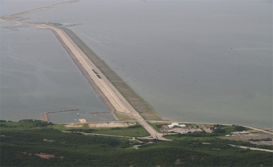 새만금 방조제 33㎞ 도로 중 지난 1998년 12월 준공된 부안군 변산면 대항리~군산시 옥도면 북가력도간 4.7㎞는 2·3·4호 방조제와 달리 해안쪽 천단부에 비해 5m 낮게 방조제 내측에 건설됐다.