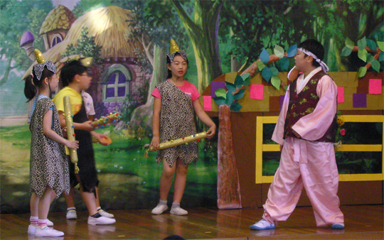 이번 축제에는 유치원부터 6학년 학생들이 모두 참여한 가운데 학년별 영어 노래와 율동, 전래동화극으로 꾸며졌다.