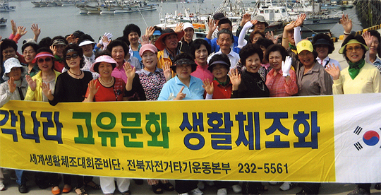 세계생활체조대회 준비단(대표 김종영)과 전북자전거타기운동본부 임원 및 지도자 50여 명은 지난 25일 새만금 현장에서 오는 '2014년 새 문화올림픽' 성공적 창립 개최 기원 결의대회를 가졌다.