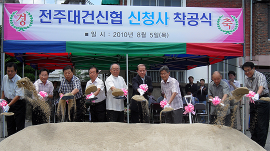 풍남문 옆에 위치한 전주대건신협이 5일 전주시 완산구 전동 신축청사 부지 현장에서 '신청사 착공식'을 가졌다. 신청사가 완공되면 전주시가 현 대건신협 부지를 문화 및 주차공간으로 조성할 계획이어서 풍남문 주변 활성화가 기대된다.