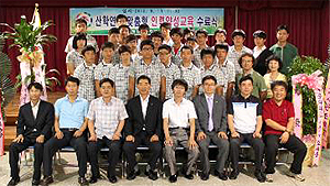 이들 학생들은 붙볕더위에도 아랑곳 하지 않고 이번 교육에서 직장예절과 공동생활에서의 배려와 봉사 등의 직업윤리, 산업안전과 체력단련, 취업 후 5년간 '1억 만들기 프로젝트'를 통한 경제교육, 취업과 진학에 관한 진로교육, 일반 상식 등 예비 직장인으로서 알아야 할 공통 과목도 성실히 이수했다.