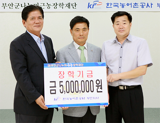 이번에 전달된 장학금은 농어촌공사 부안지시 직원들이 매월 급여에서 일정 금액을 공제하여 5년간 모은 정성어린 성금이다.