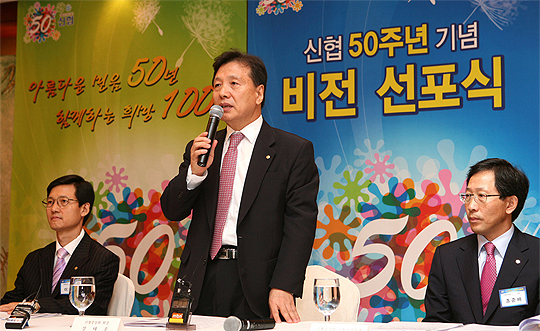 서민경제를 뒷받침해 온 신협이 7일 50주년을 맞았다. 신협은 7일 서울 소공동 롯데호텔에서 가진 비전선포식을 통해 2020년까지 '자산 100조원, 조합원 1000만명 시대'를 열겠다며 제2의 도약을 선언했다. 이에맞춰 전북신협도 2020년까지 자산 7조원 조합원 100만명 시대를 달성하겠다고 다짐했다.