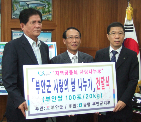 한편 농협부안군지부는 추석을 앞두고 이에 앞서 부안종합사회복지관·송산효도마을 등 관내 사회복지시설과 독거노인 저소득 다문화가정을 직접 방문, 사랑의 쌀 40포(포당 10kg)를 전달했다.