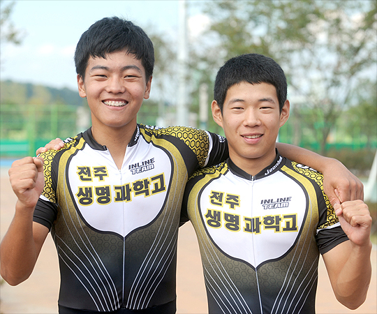 제91회 전국체육대회 인라인 롤러 남고에서 도내 선수단이 14년만의 금메달을 따내는 쾌거를 이뤘다. 7일 인라인 롤러 남고 1000m에 출전한 임정훈 선수(전주생명과학고 2년)가 1위로 결승점을 통과하며 십수년에 걸친 선배들의 한을 풀었다. 하지만 임 선수의 우승 뒤에는 초등학교부터 운동을 함께 한 죽마고우 최광진 선수(전주생명과학고 2년)의 헌신이 있었다. 최 선수 역시 이날 동메달을 획득하며 죽마고우와 기쁨을 함께 나눴다.