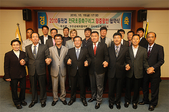 올 한해를 결산하게 될 2010 전국 초중고 축구리그가 오는 23일부터 11월 7일까지 무주군 일원에서 개최 예정인 가운데 도 축구협회와 무주군이 지난 15일 오후 무주군청에서 대회 협약식을 갖고 성공적인 대회를 다짐했다.