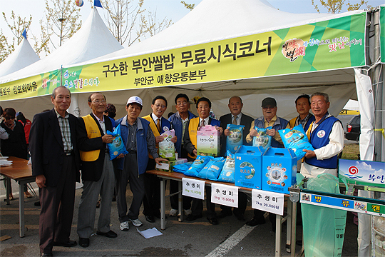 군 애향운동본부는 관내 쌀 홍보를 위해 이달 14일부터 17일까지 진서면 곰소리 곰소 다용도부지에서 열린 제 6회 곰소젓갈 코리아 행사장에서 쌀밥 무료 시식코너를 운영, 이곳을 찾은 관광객에게 구수하고 쫄깃쫄깃한 부안 쌀의 참맛을 느끼게 했다.