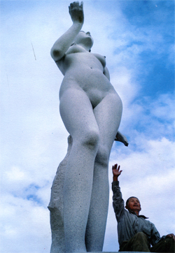 부드러운 곡선이 살아있는 여체를 사실적으로 묘사한 작품이 드넓은 자연과 조화를 이룬다.