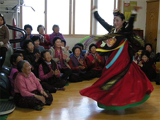 이들은 이날 오후 4시 임실군 지사면 영천리 사촌마을 경로당을 찾아 판소리, 민요, 고전무용 등 다양한 프로그램을 펼치며 어르신들과 어울려 흥겨운 자리를 선사하고 위로, 격려했다.
